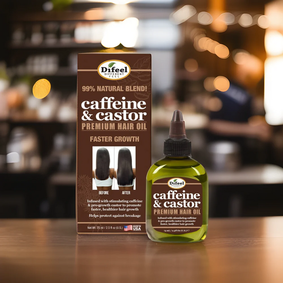 DIFEEL CAFFEINE & CASTOR PREMIUM HAIR OIL FOR FASTER HAIR GROWTH 2.5 OZ.
