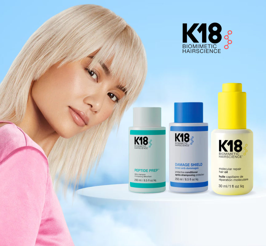 K18 products contain peptides that penetrate deep into the hair shaft to repair broken keratin chains. This helps to restore hair strength, elasticity, and overall health.