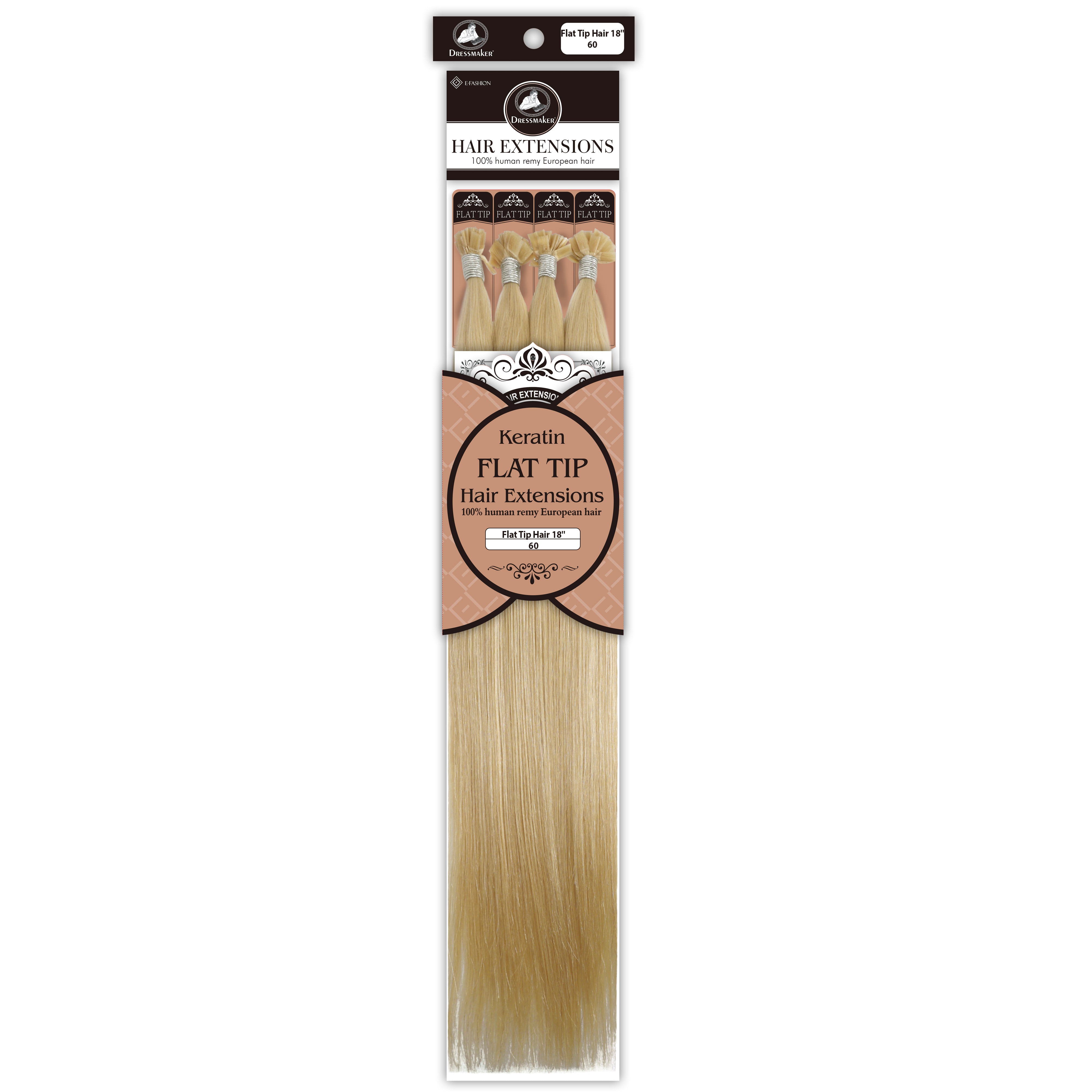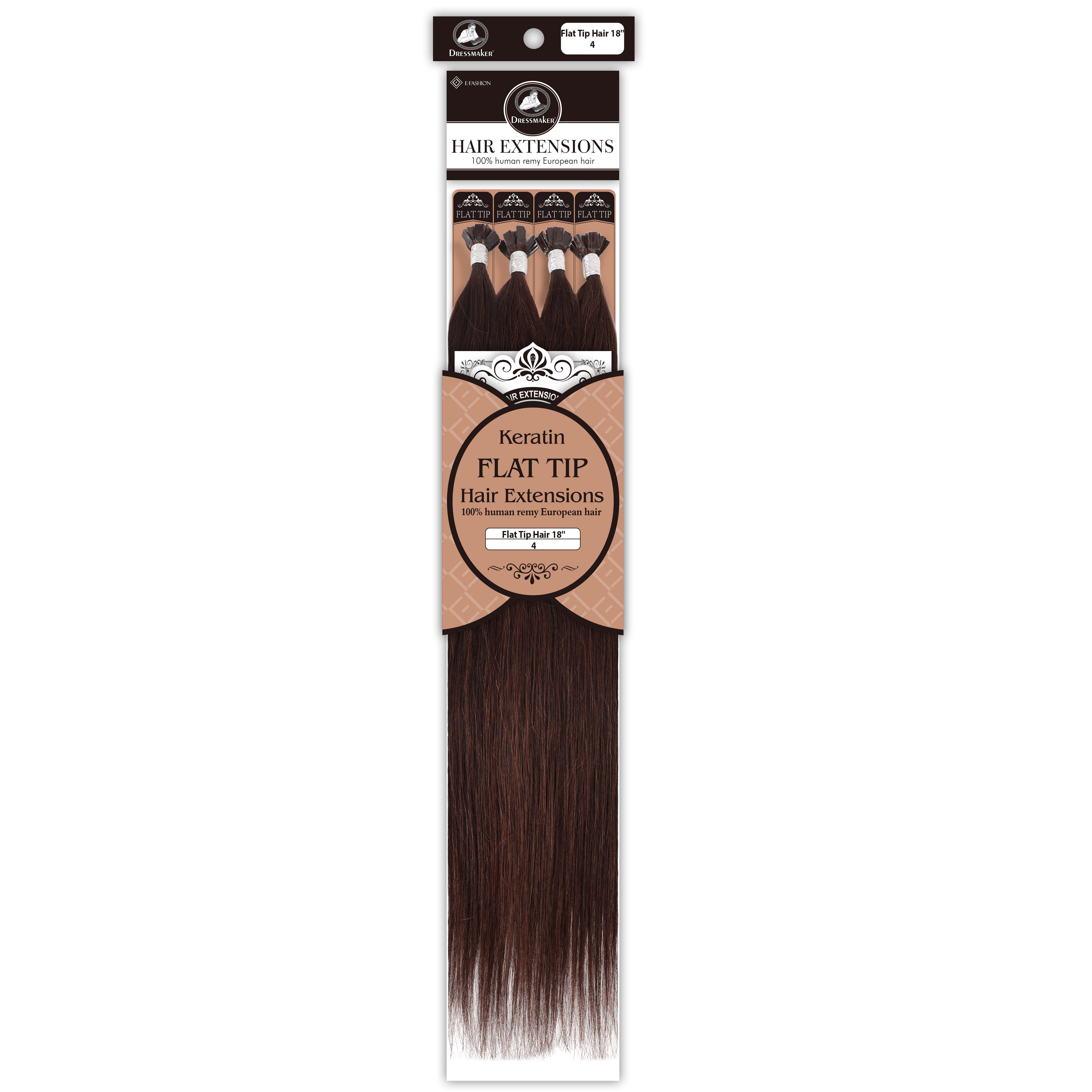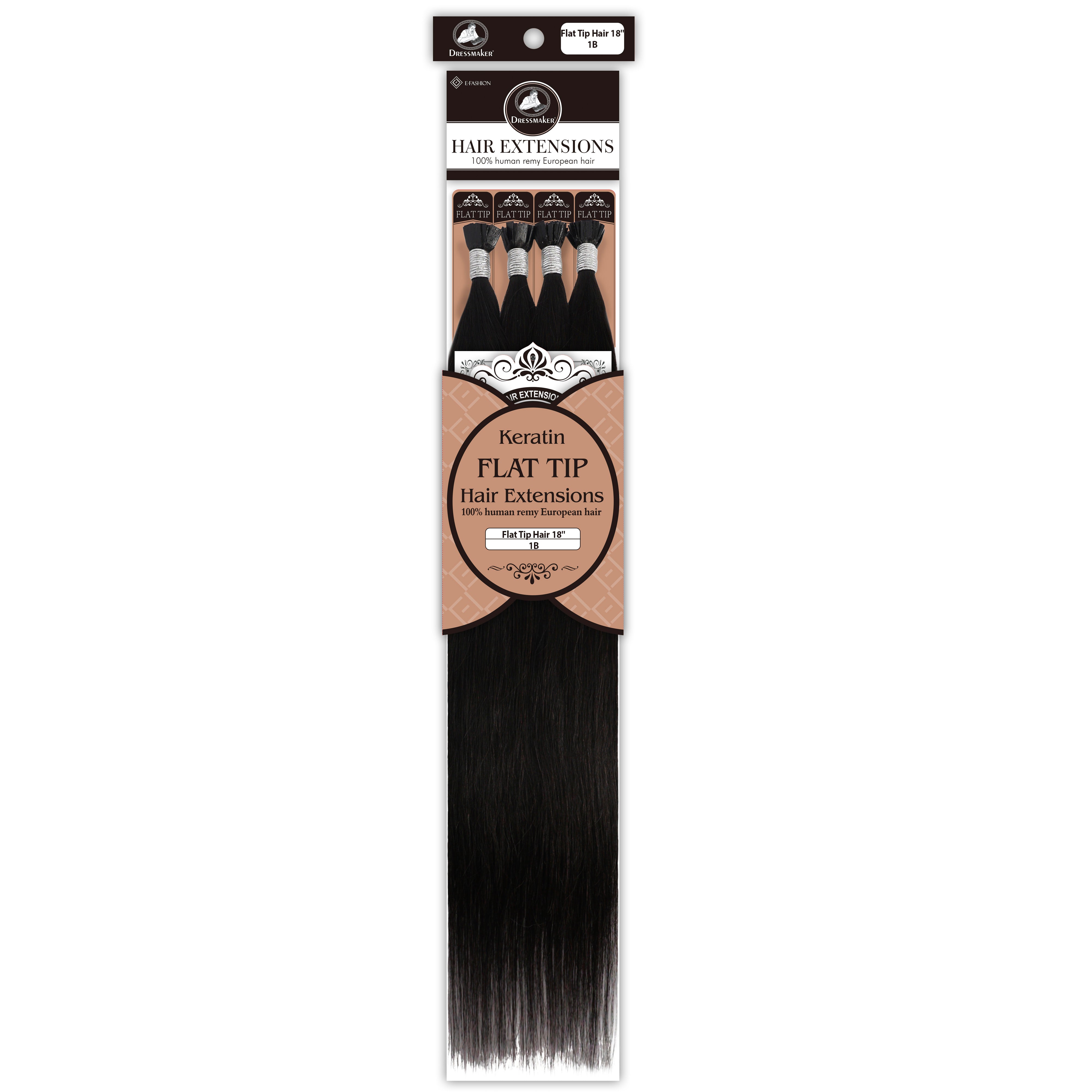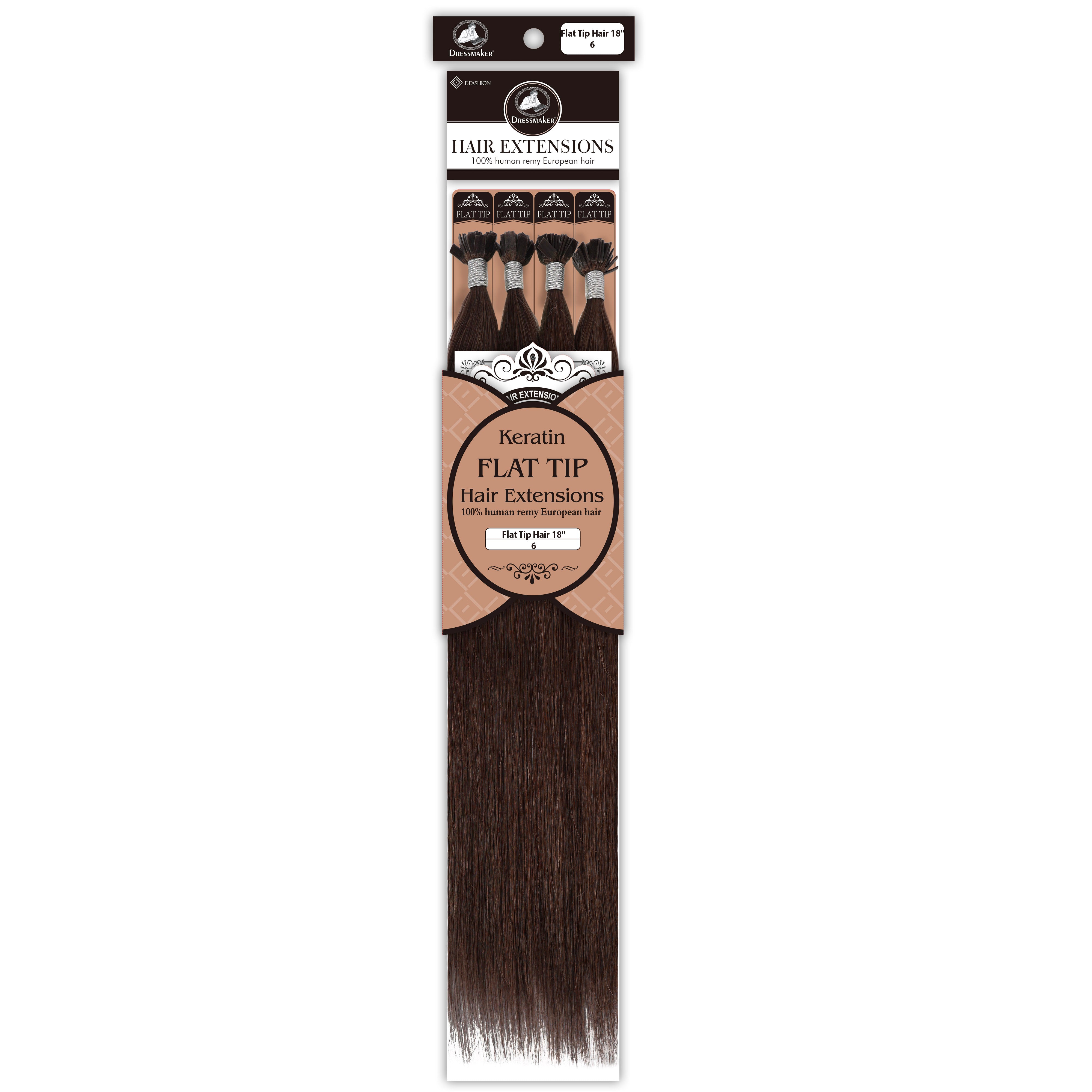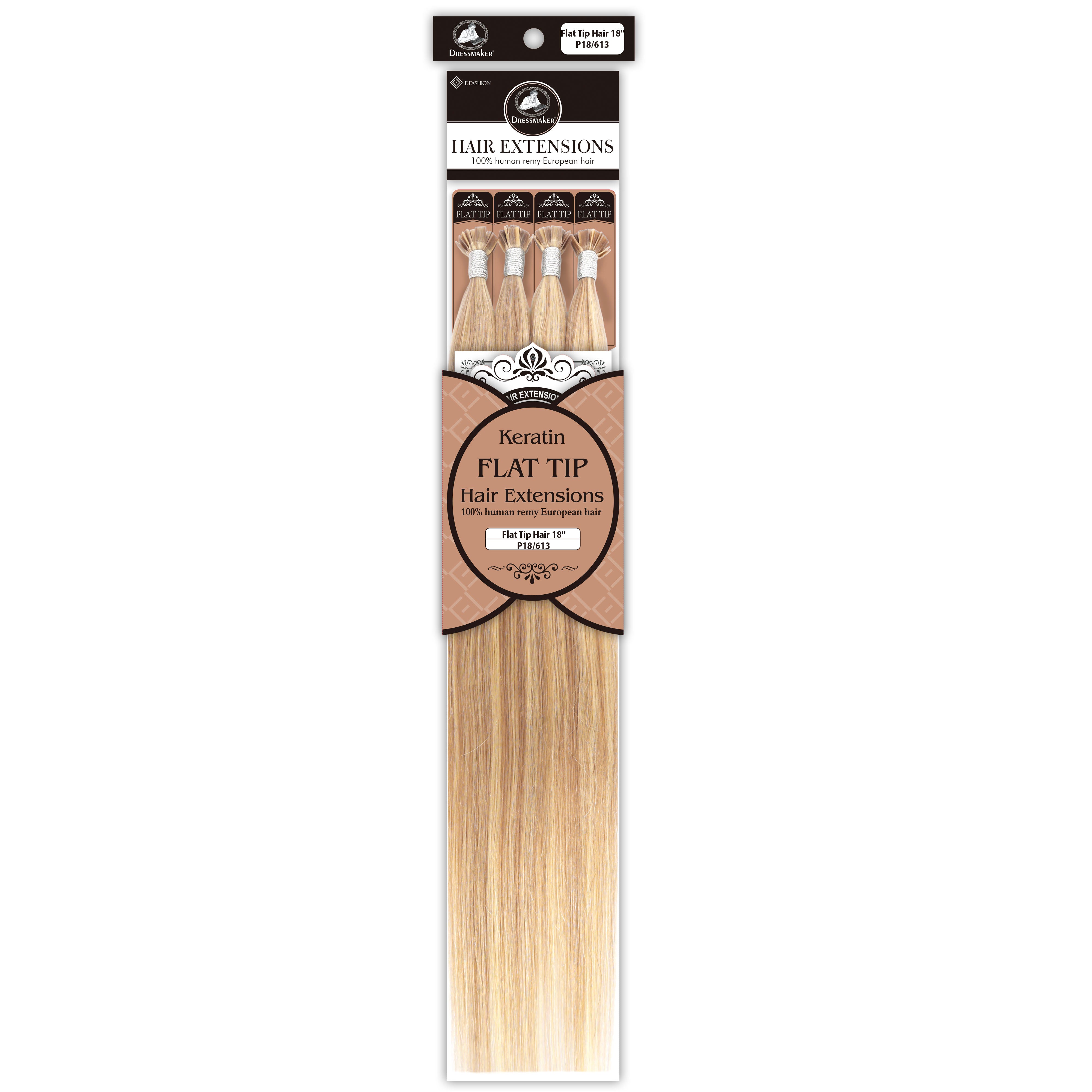 Dressmaker's 100% Human Remy European Keratin Flat Tip Hair Extensions are premium quality extensions designed to add length and volume to your hair. These extensions are straight and utilize keratin flat tip bonds, providing a secure and natural-looking attachment. Made from high-quality European Remy hair, these extensions offer a luxurious feel and a seamless blend with your natural hair.