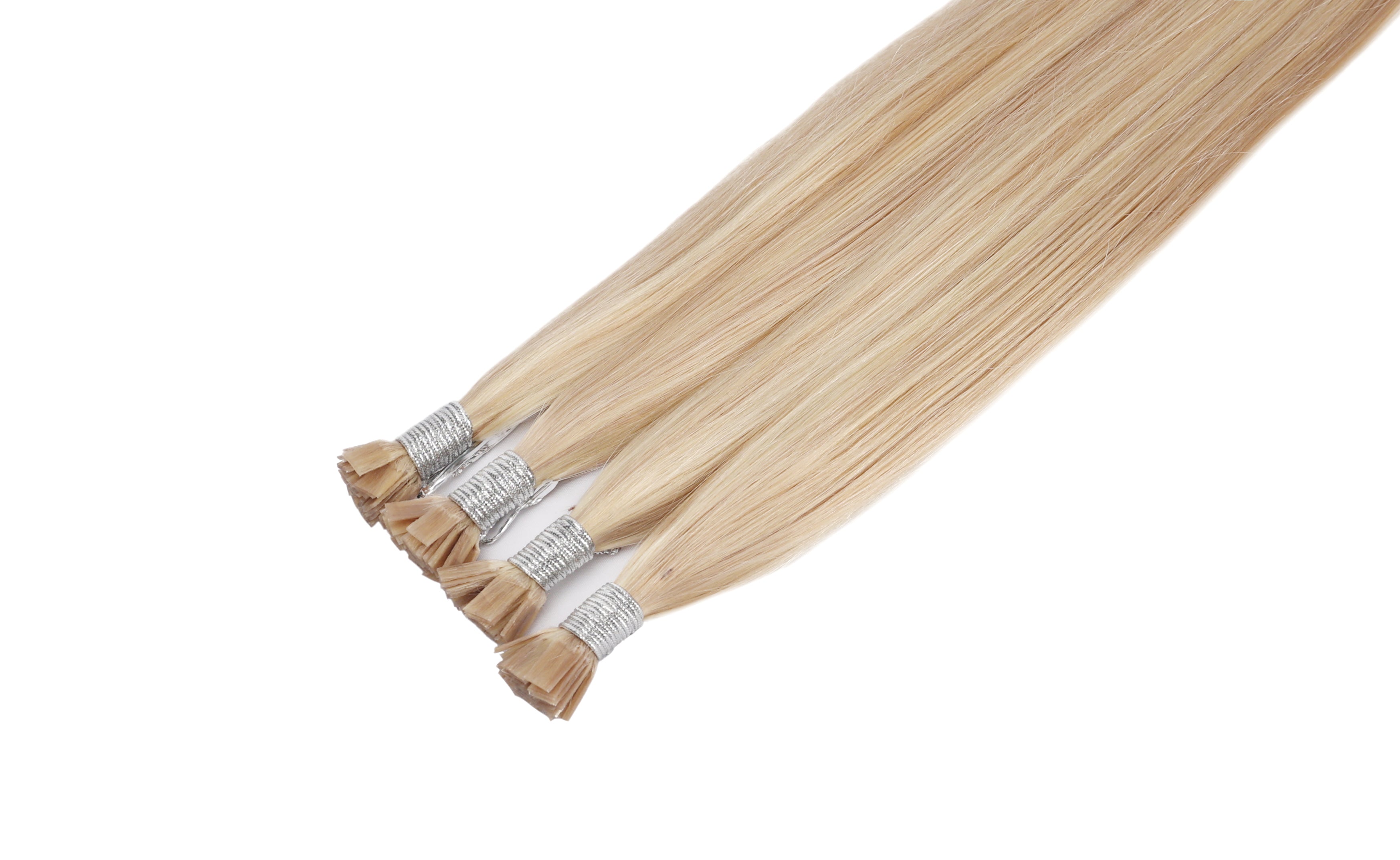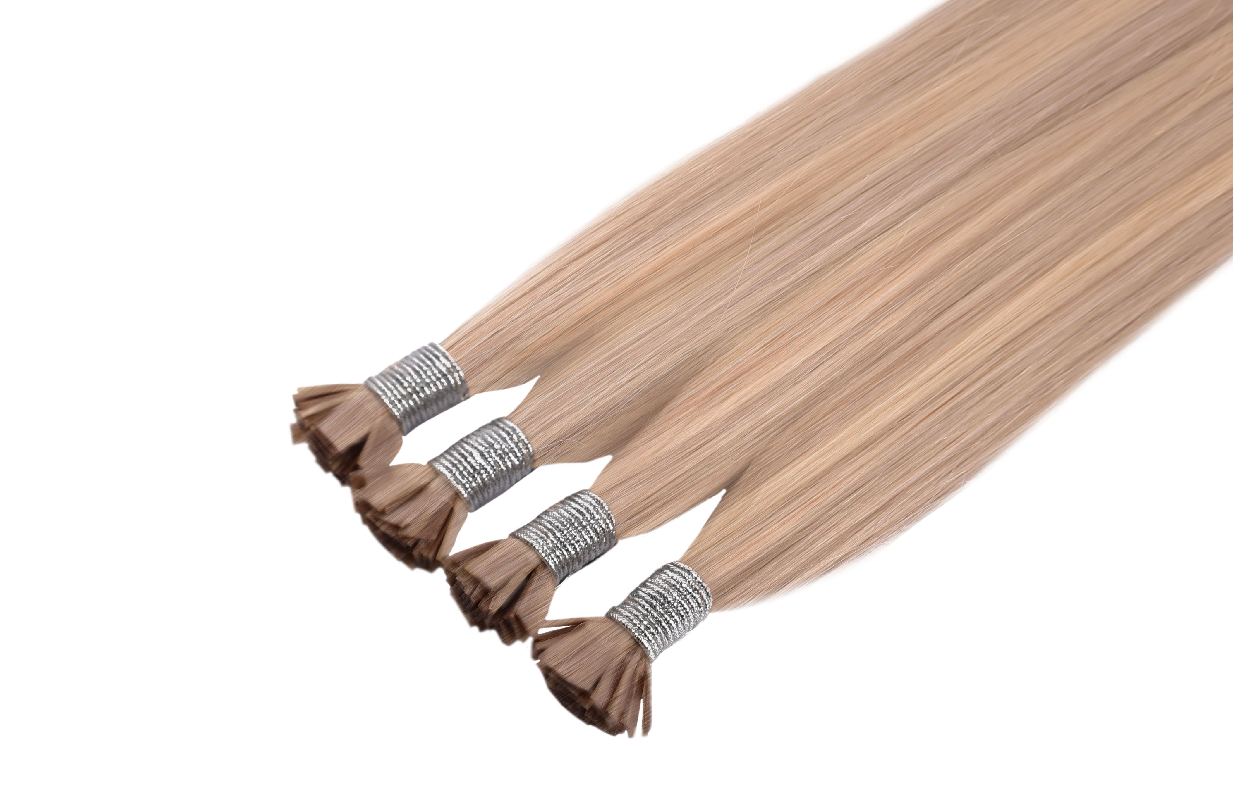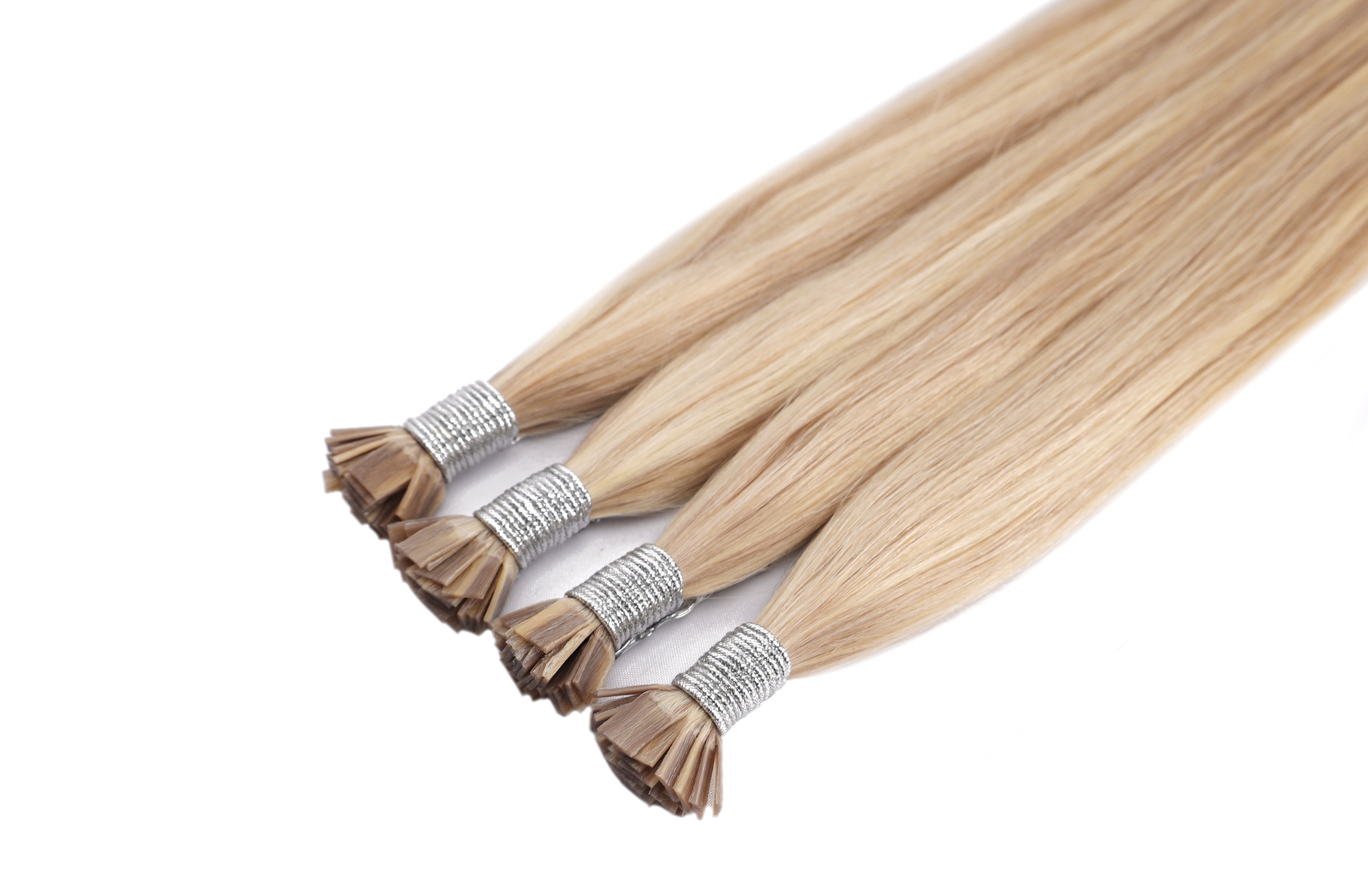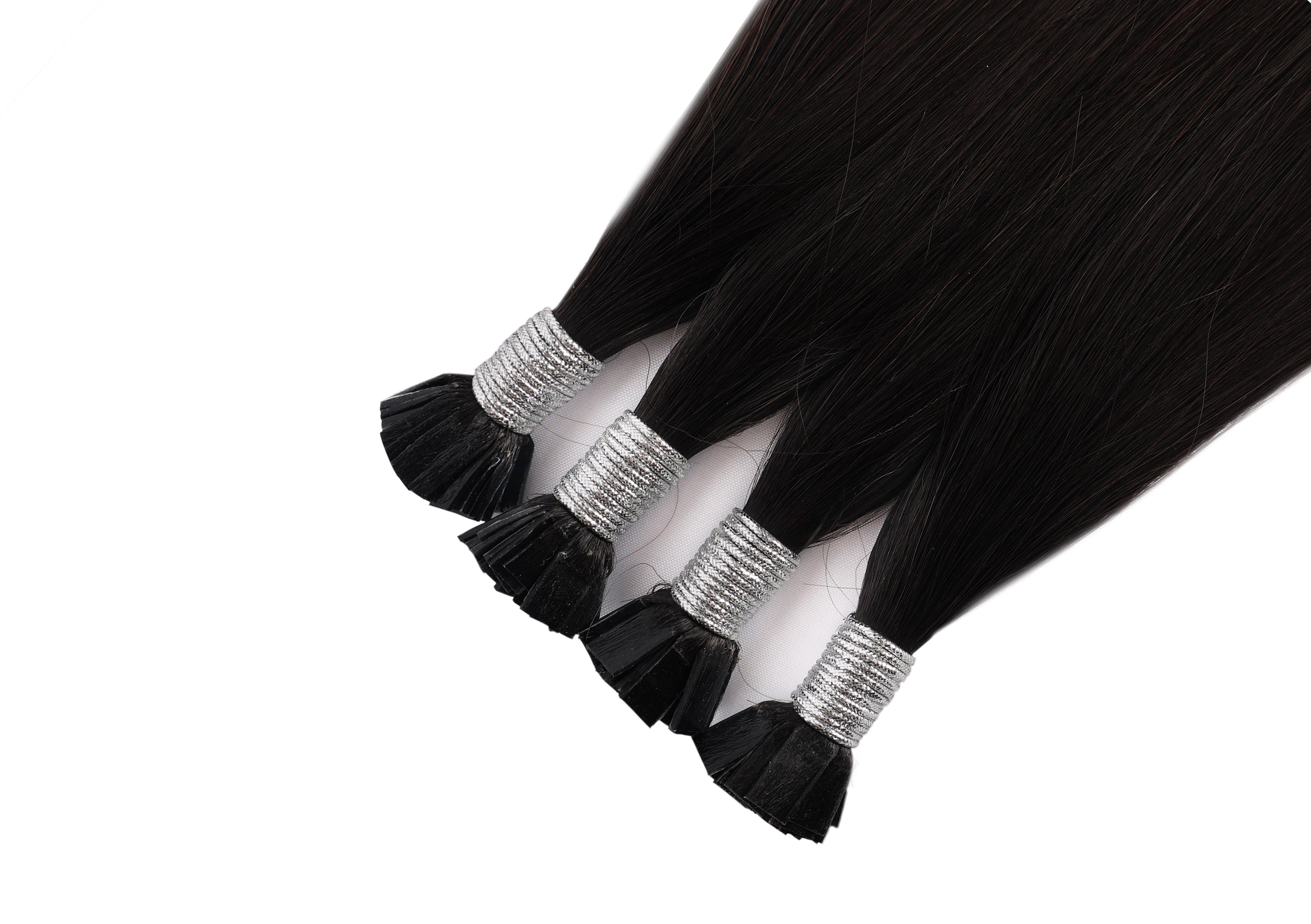 - The extensions are typically packaged in a bundle, with each piece pre-tipped with keratin flat tips.