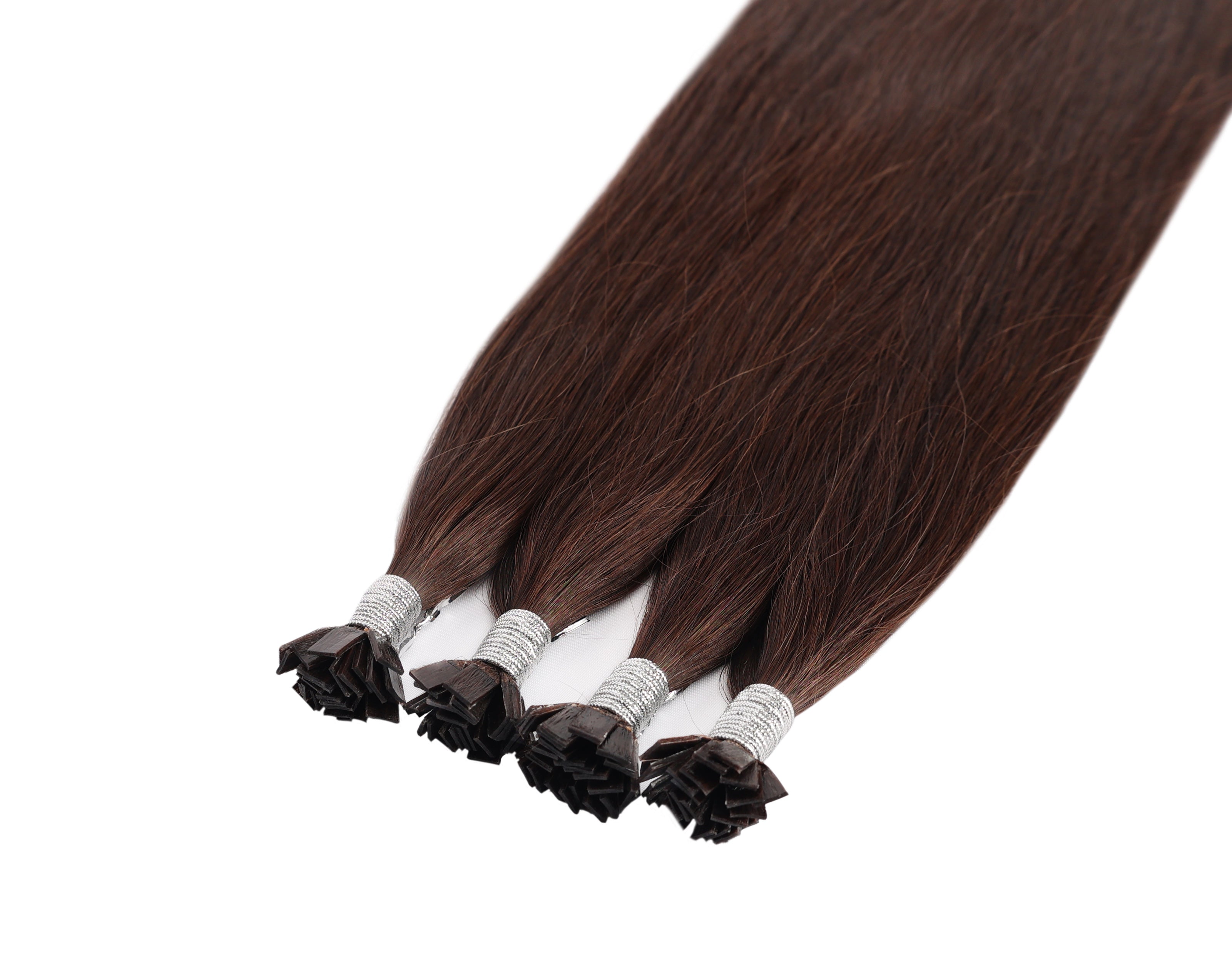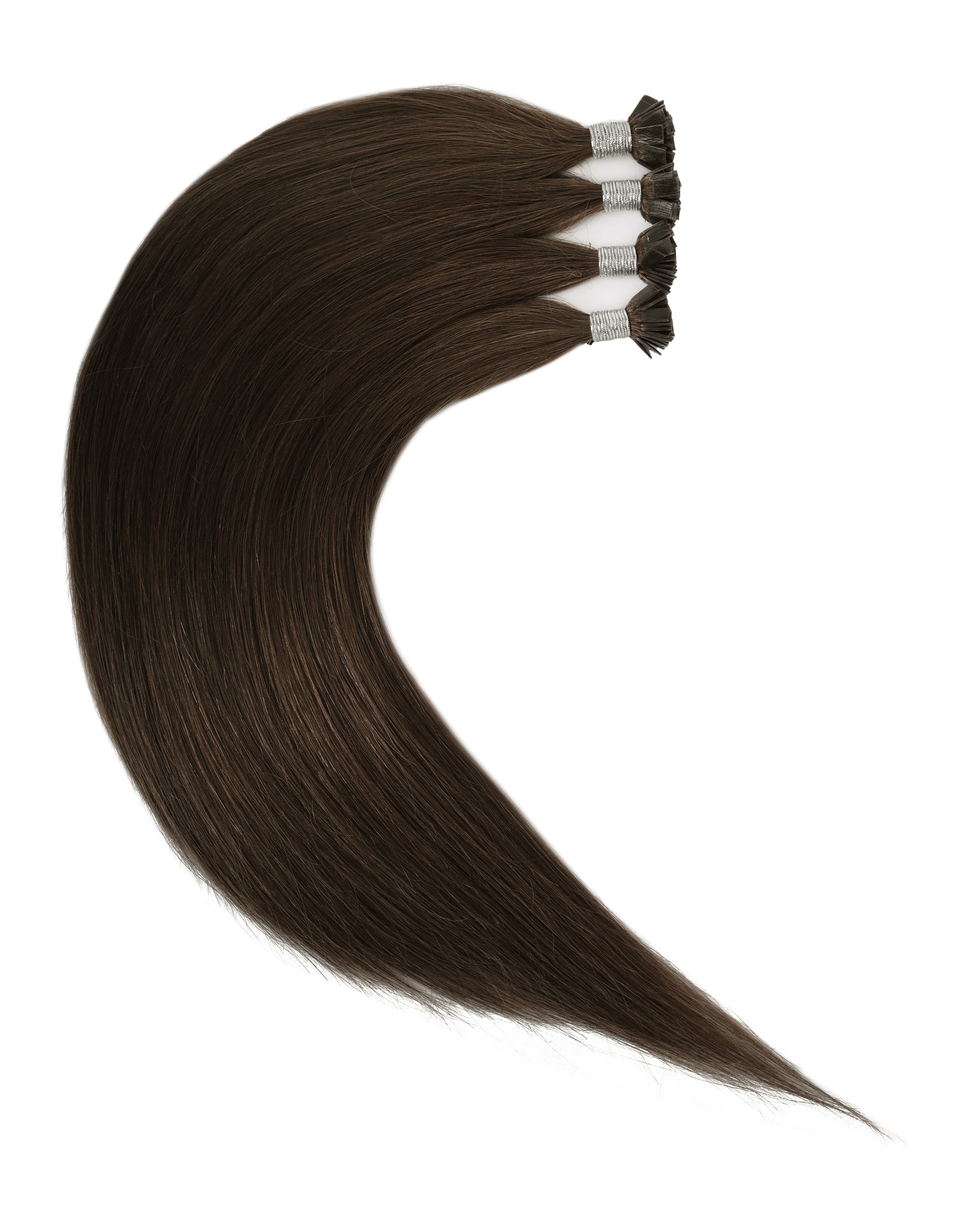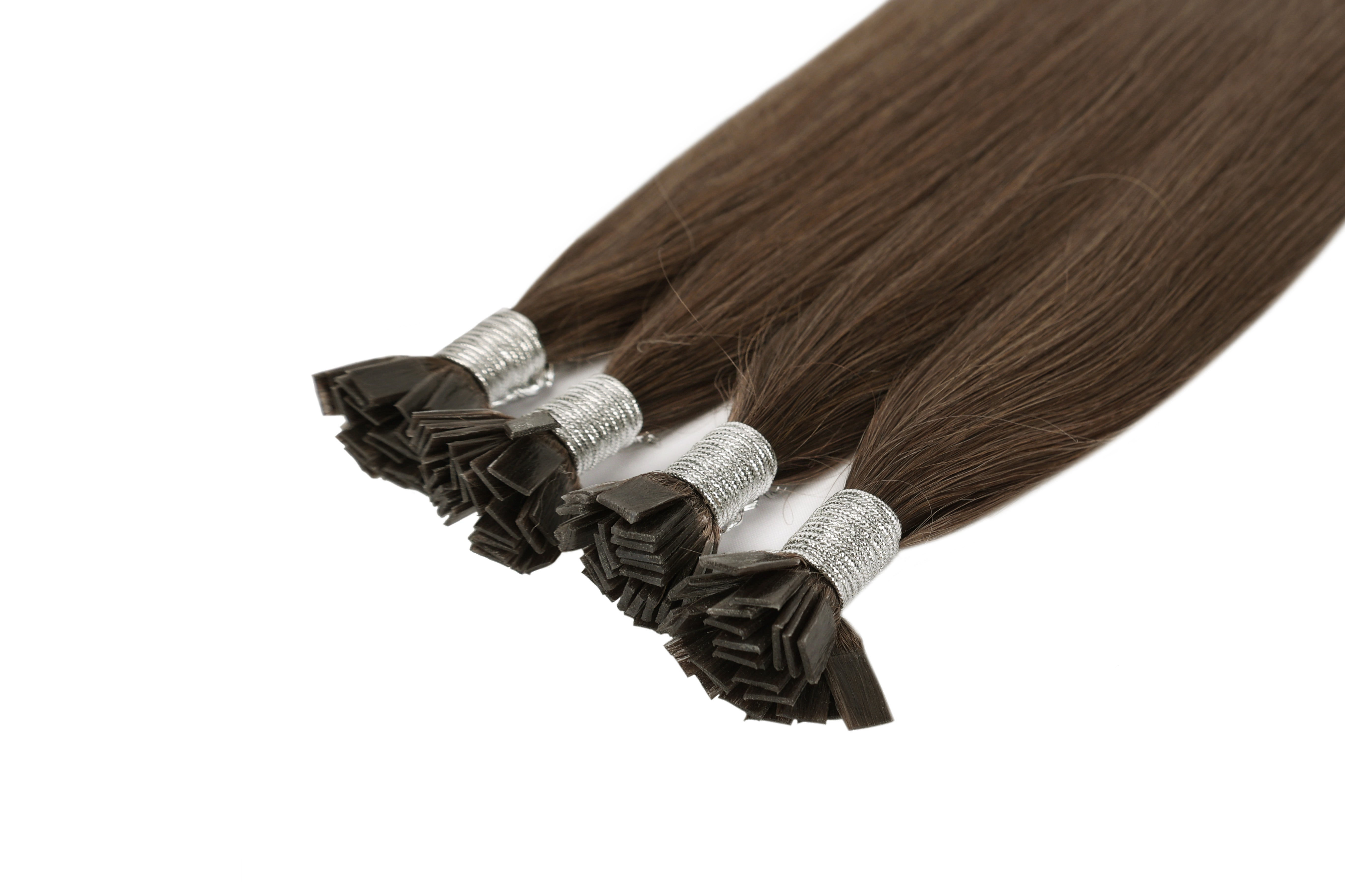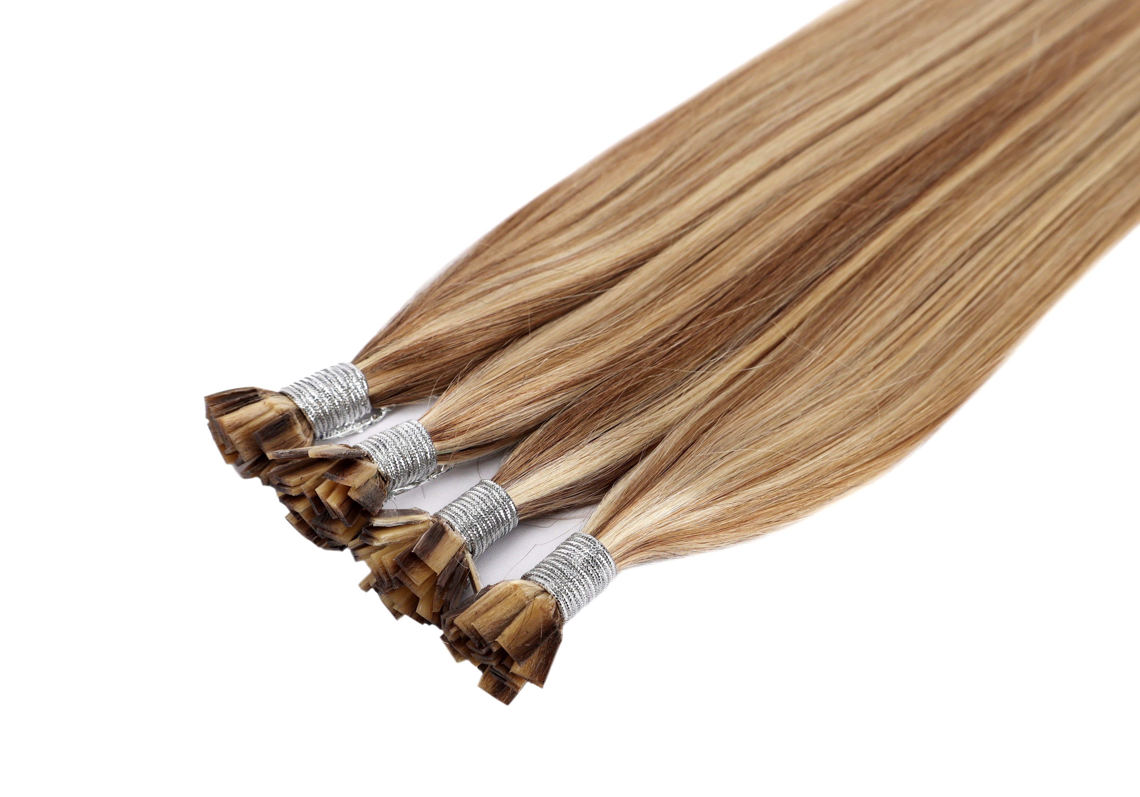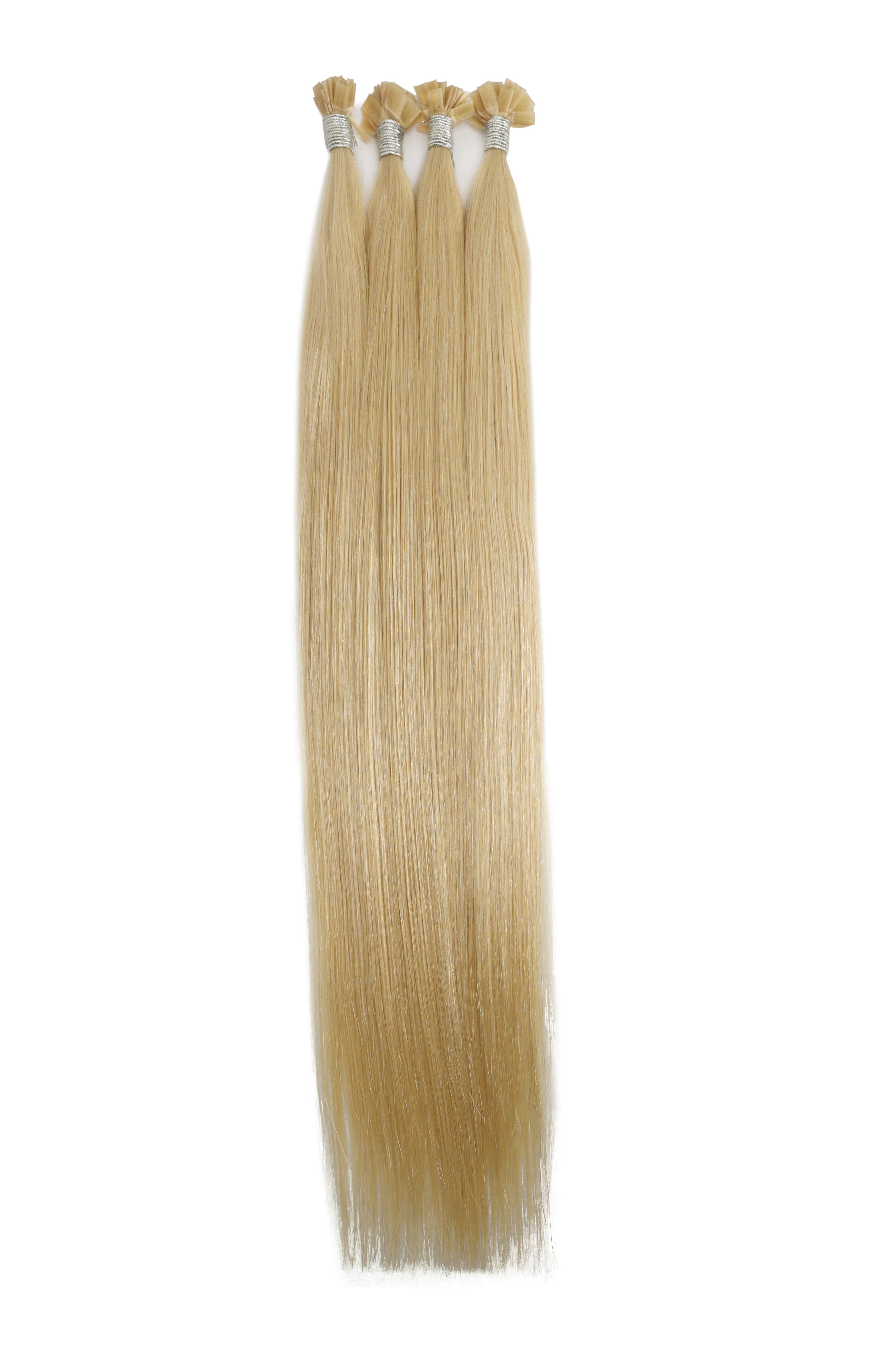 - The extensions are typically packaged in a bundle, with each piece pre-tipped with keratin flat tips.