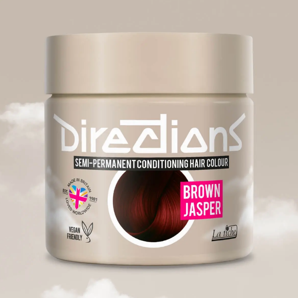 Directions Brown Jasper is a rich, earthy brown shade inspired by the natural tones of jasper stone, offering a warm and grounded look with subtle depth. This colour delivers a smooth, natural finish, ideal for enhancing brunette tones or adding soft dimension to the hair.