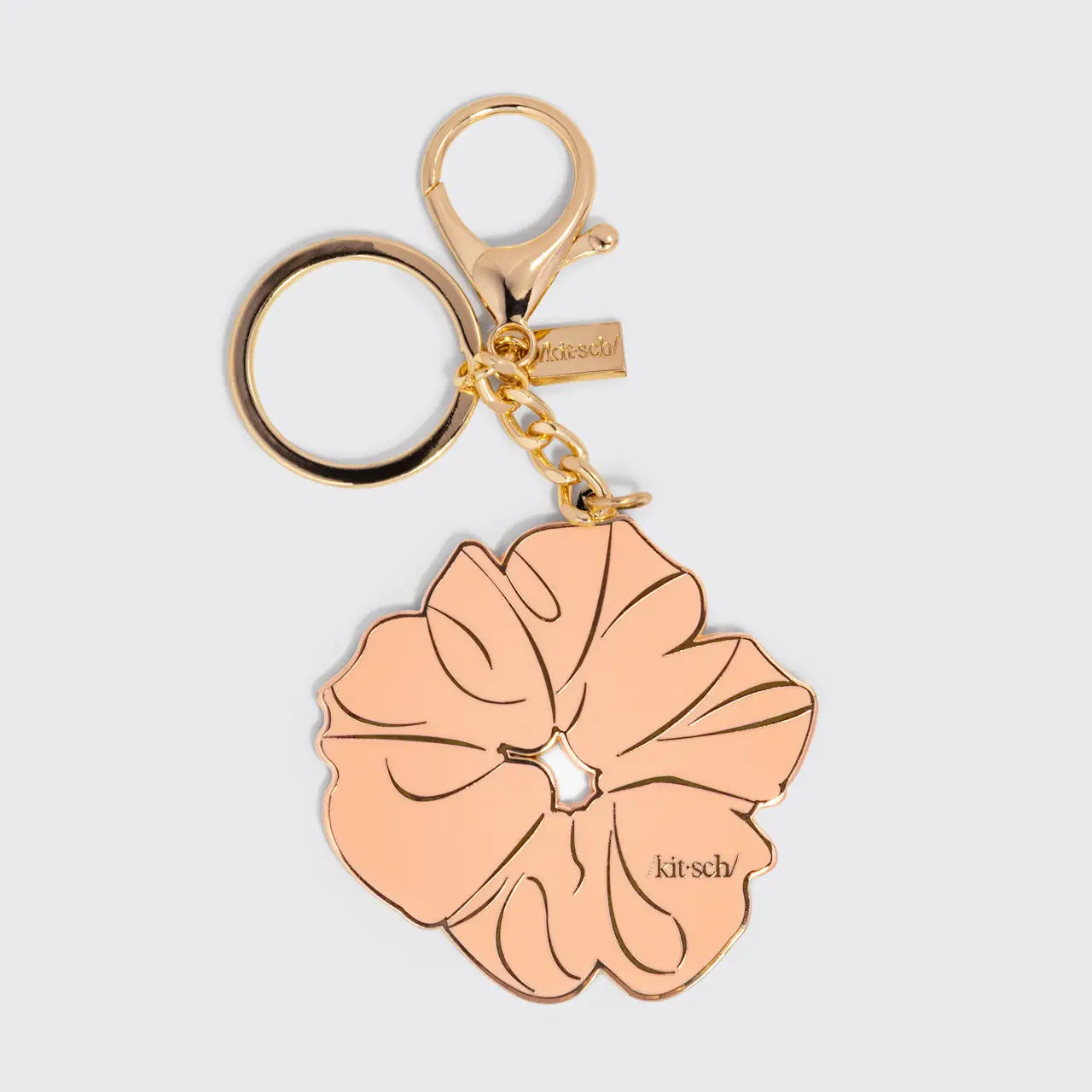 Elevate your hair accessory game with this innovative keychain scrunchie from Kitsch. Crafted with a durable metal enamel charm in warm terracotta tones, it combines functionality with understated style. The secure keychain attachment keeps your scrunchie within reach while adding a polished accent to your bag or keys. Perfect for those who refuse to compromise between practicality and aesthetic appeal, this piece transitions seamlessly from gym to everyday wear.