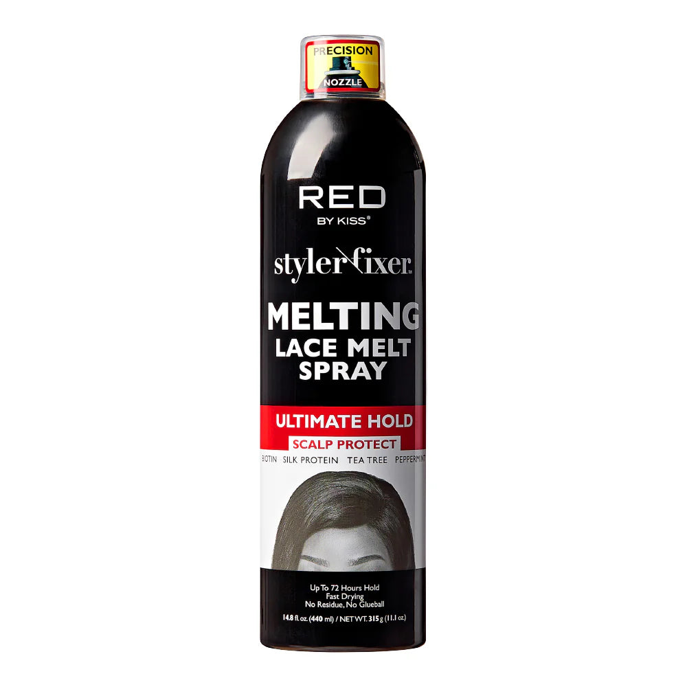 RED by KISS Styler Fixer Melting Lace Melt Spray, the ultimate solution for securing lace front wigs and hairpieces with confidence. Our advanced formula not only promises an unmatched 20X stronger hold but also cares for your scalp with a blend of natural, nourishing ingredients.
