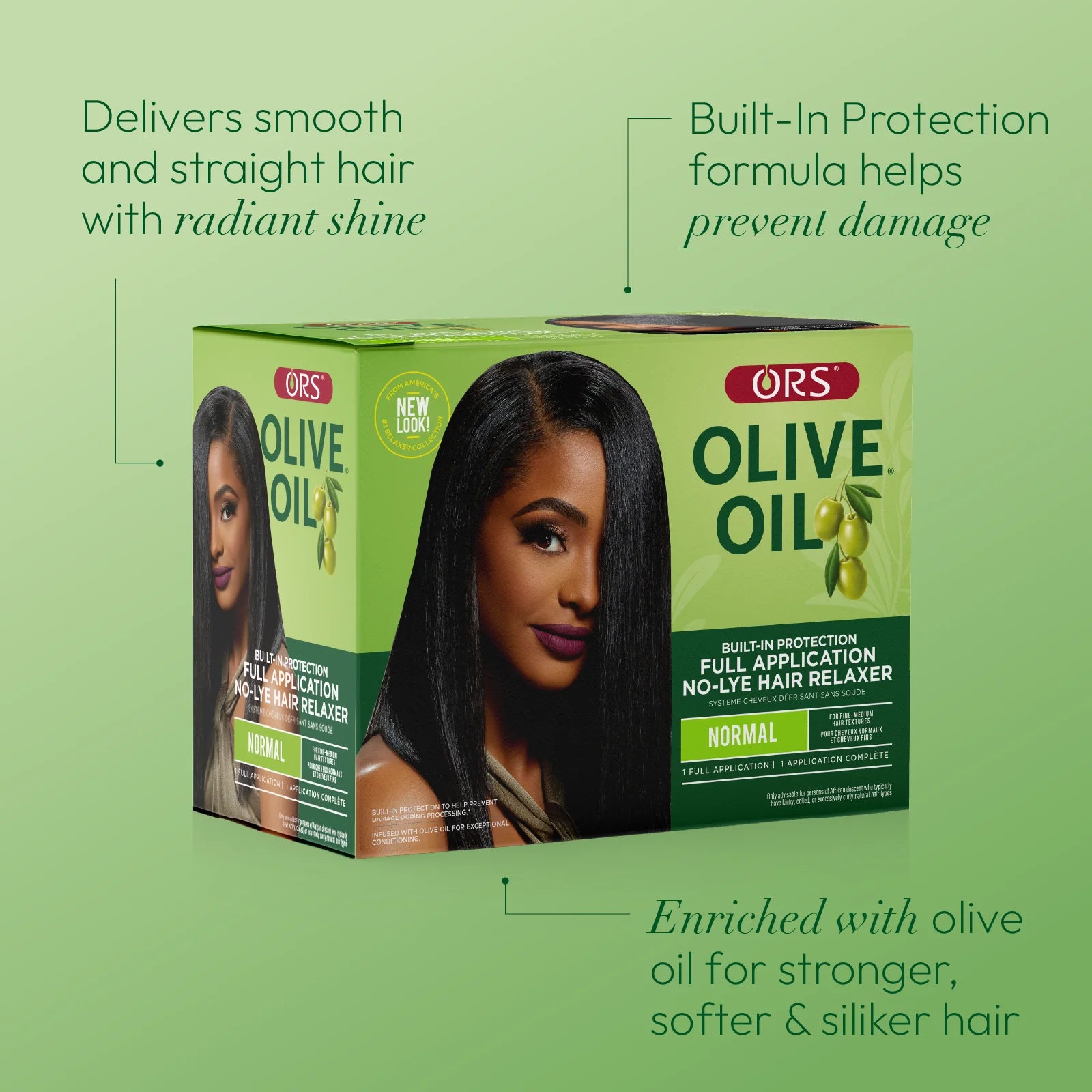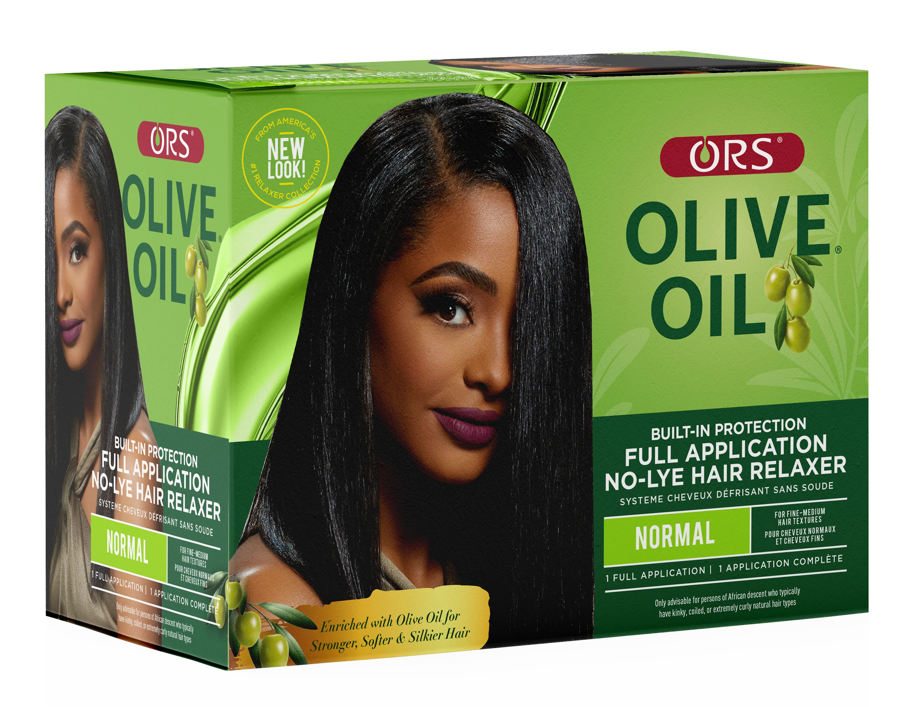 The ORS Olive Oil Built-In Protection No-Lye Hair Relaxer system infuses hair with moisturizing olive oil and natural herbs to help to protect the hair from damage during processing. The result is smoother, softer, stronger hair with impeccable Add Shine.