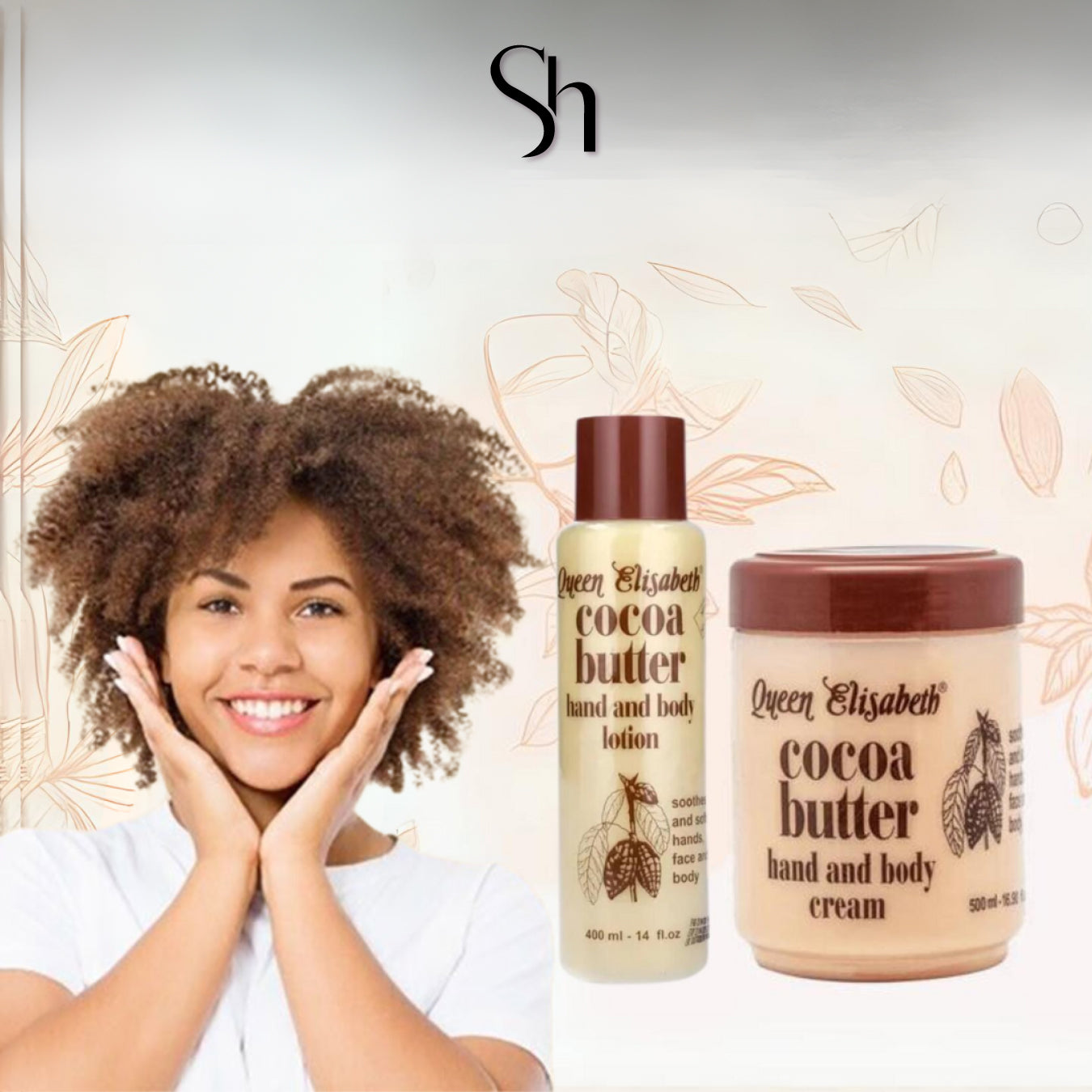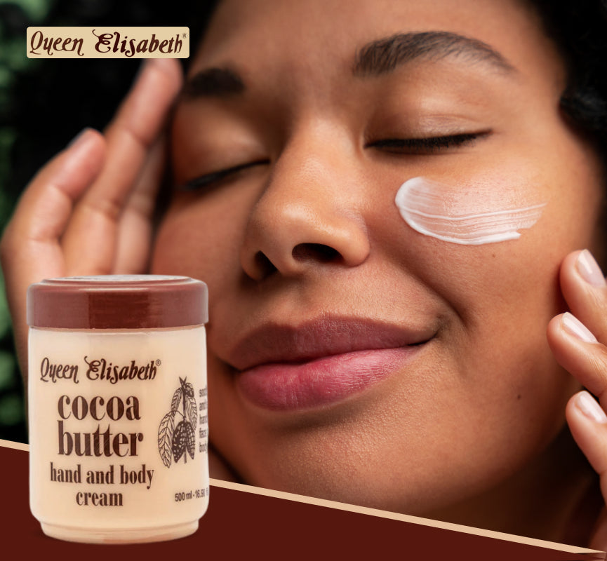 2. Queen Elizabeth Cocoa Butter Hand and Body Lotion: A lightweight lotion that provides long-lasting hydration. It absorbs quickly into the skin, leaving it soft and smooth without a greasy residue. It is ideal for daily use on hands and body.