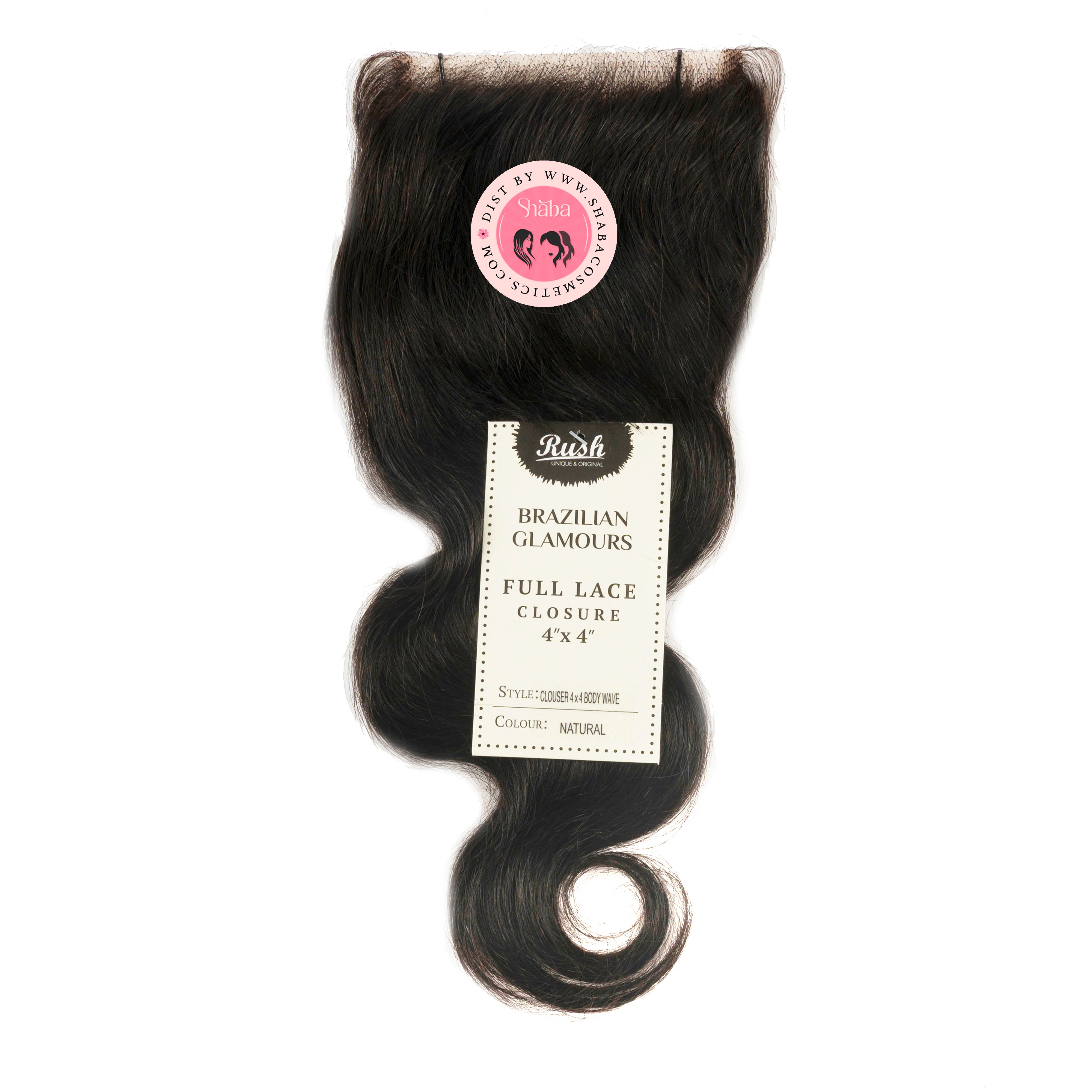 RUSH 100% HAND CRAFTED BRAZILIAN GLAMOUR FULL LACE CLOSURE 4x4 WITH BABY HAIR BODY WAVE