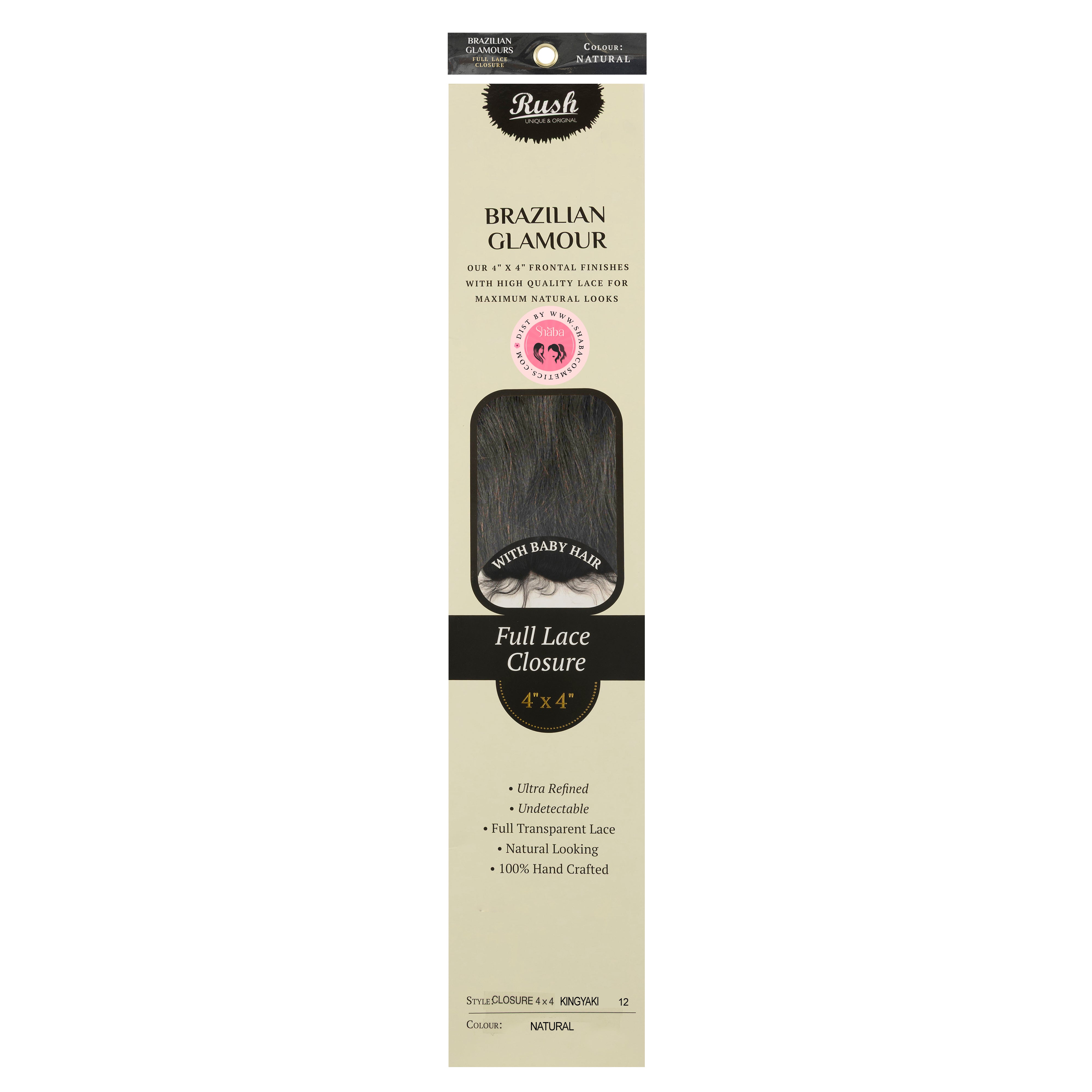 RUSH 100% HAND CRAFTED BRAZILIAN GLAMOUR FULL LACE CLOSURE 4X4 WITH BABY HAIR KING YAKI