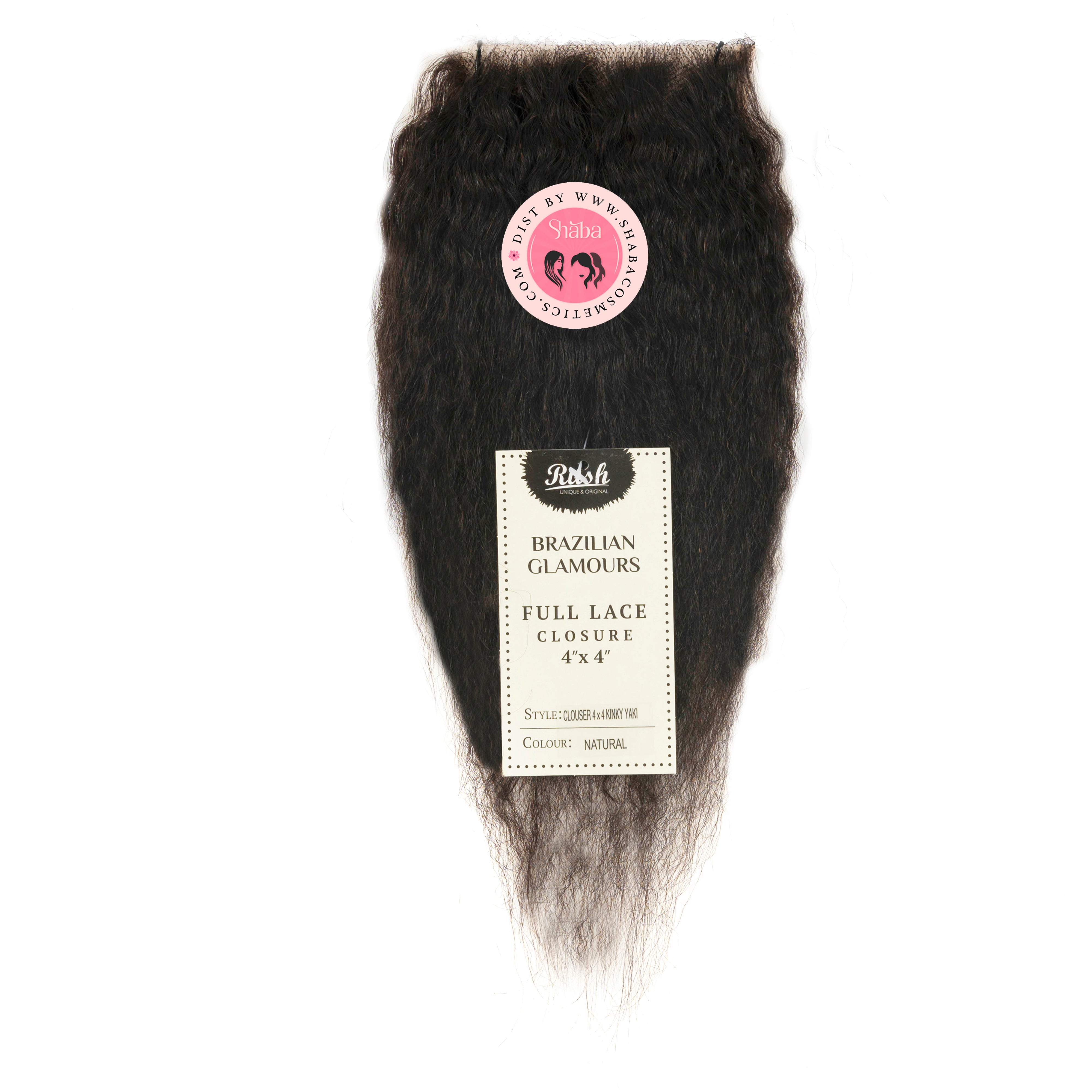 RUSH 100% HAND CRAFTED BRAZILIAN GLAMOUR FULL LACE CLOSURE 4X4 WITH BABY HAIR KINKY YAKI