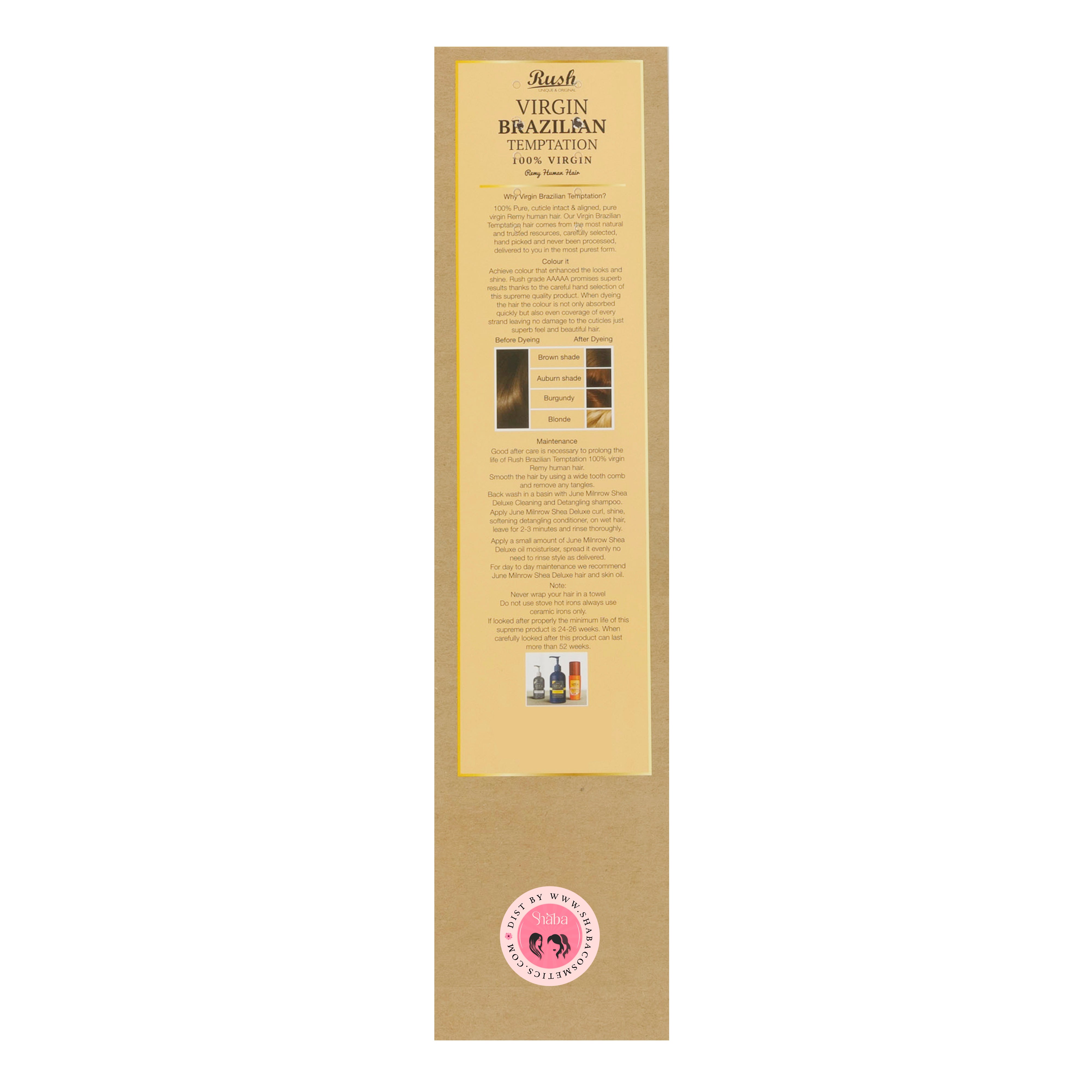 Experience the ultimate in hair luxury with Rush 100% Unprocessed Virgin Brazilian Temptation Pure Remy Human Hair Straight Weave. Crafted from the finest Brazilian hair, this premium weave offers a natural, smooth, and silky texture that flows with effortless elegance. Each strand is 100% unprocessed and free of chemicals, preserving the hair’s natural beauty and ensuring it remains tangle-free, soft, and full of life.