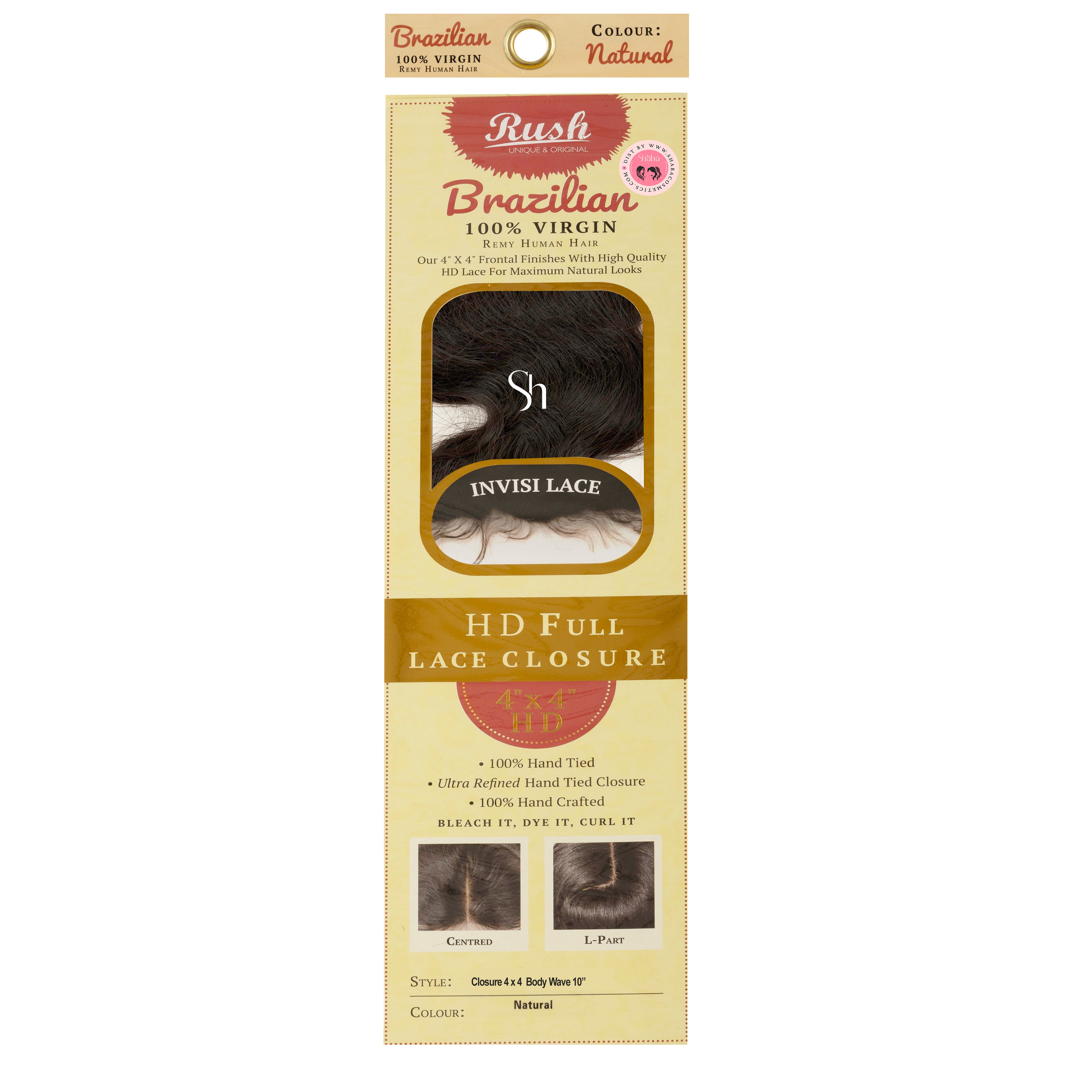 RUSH TEMPTATION 100% VIRGIN BRAZILIAN FULL HD LACE CLOSURE BODY WAVE 4x4