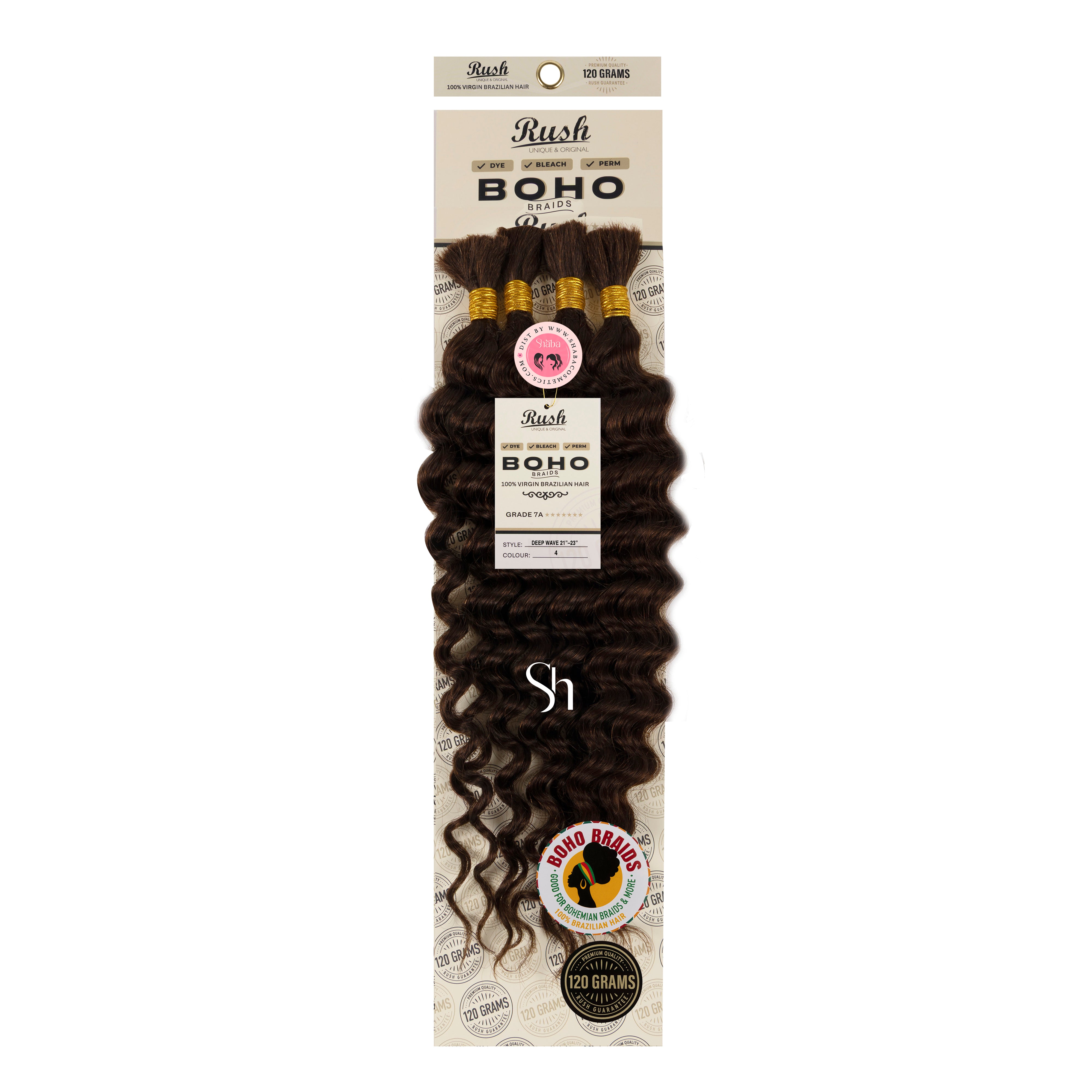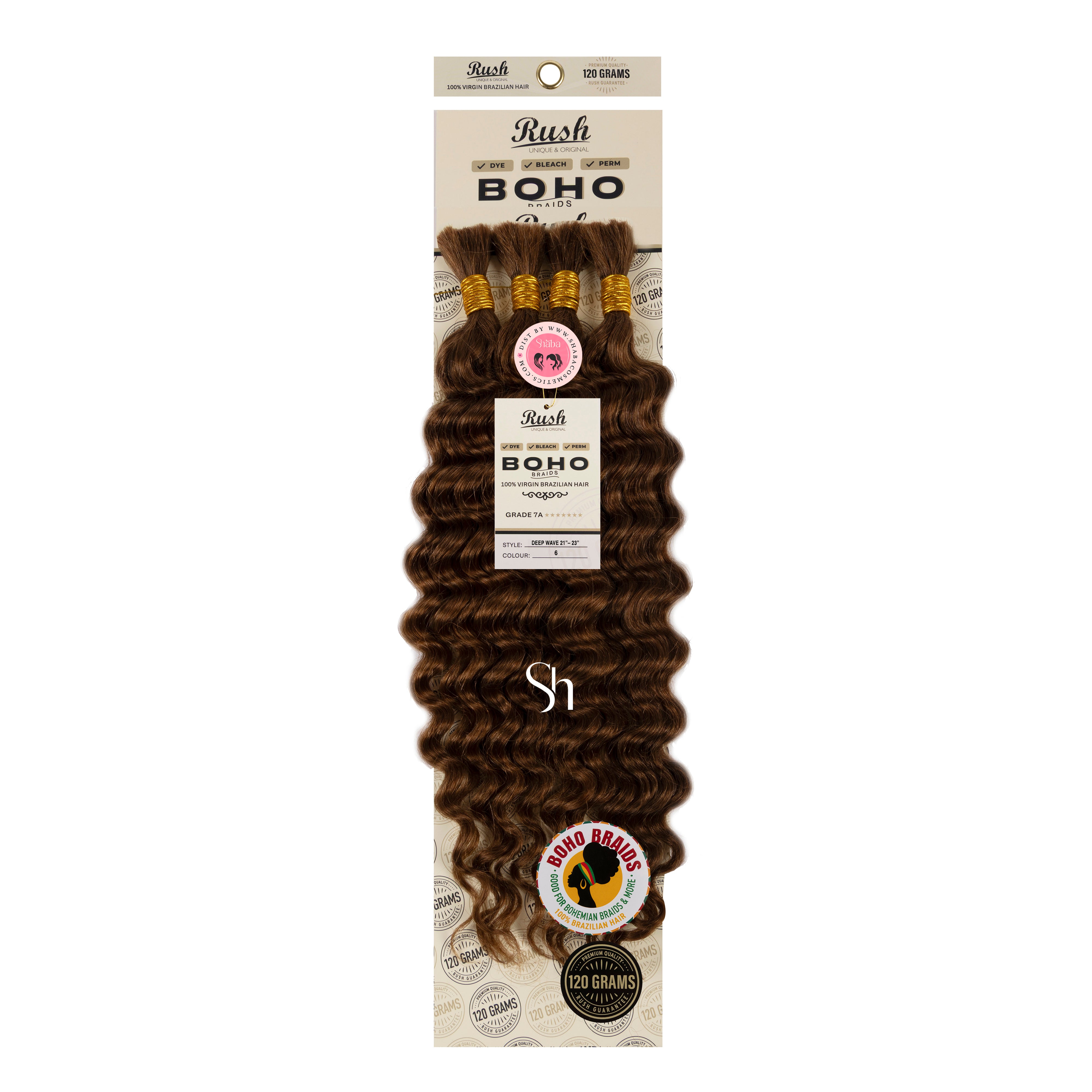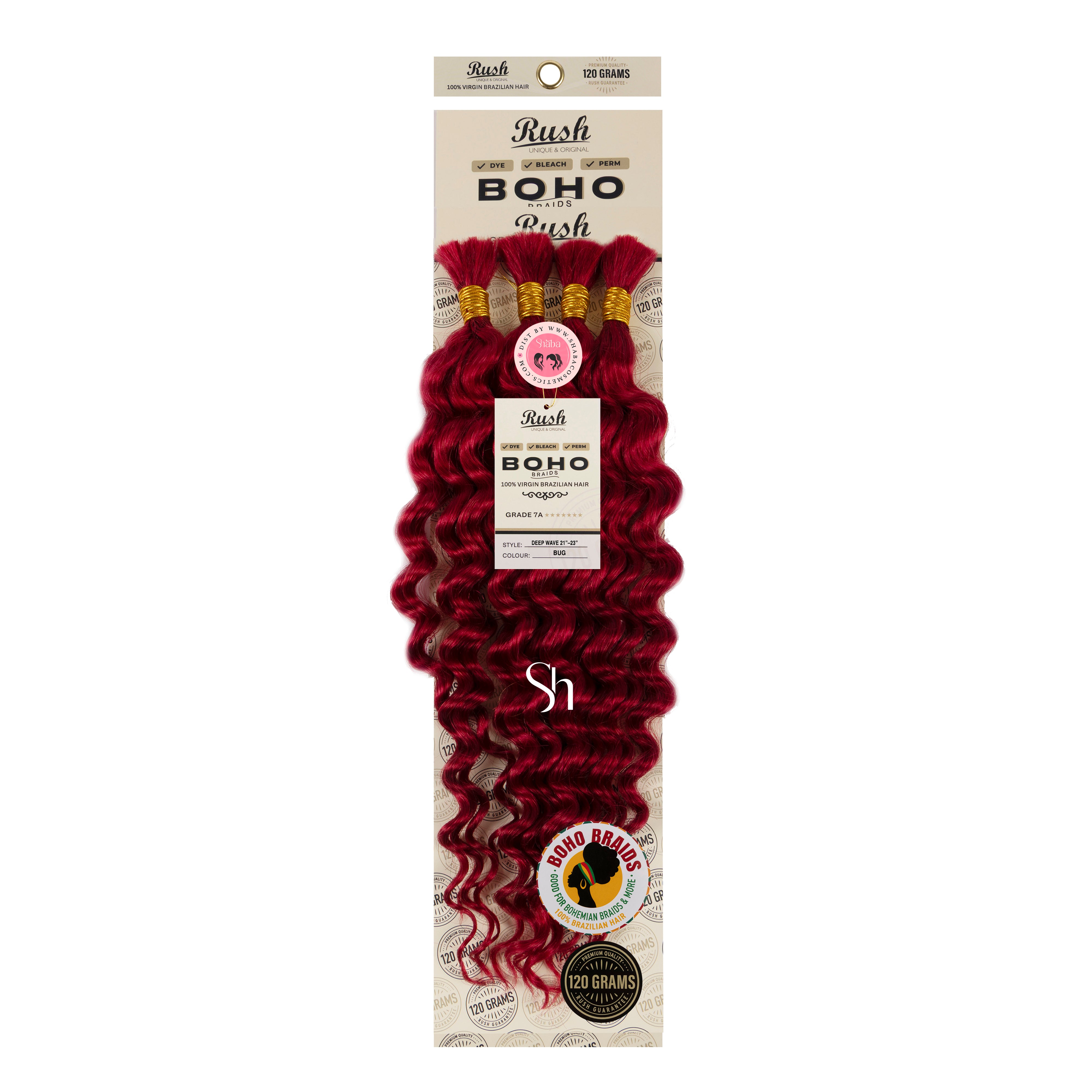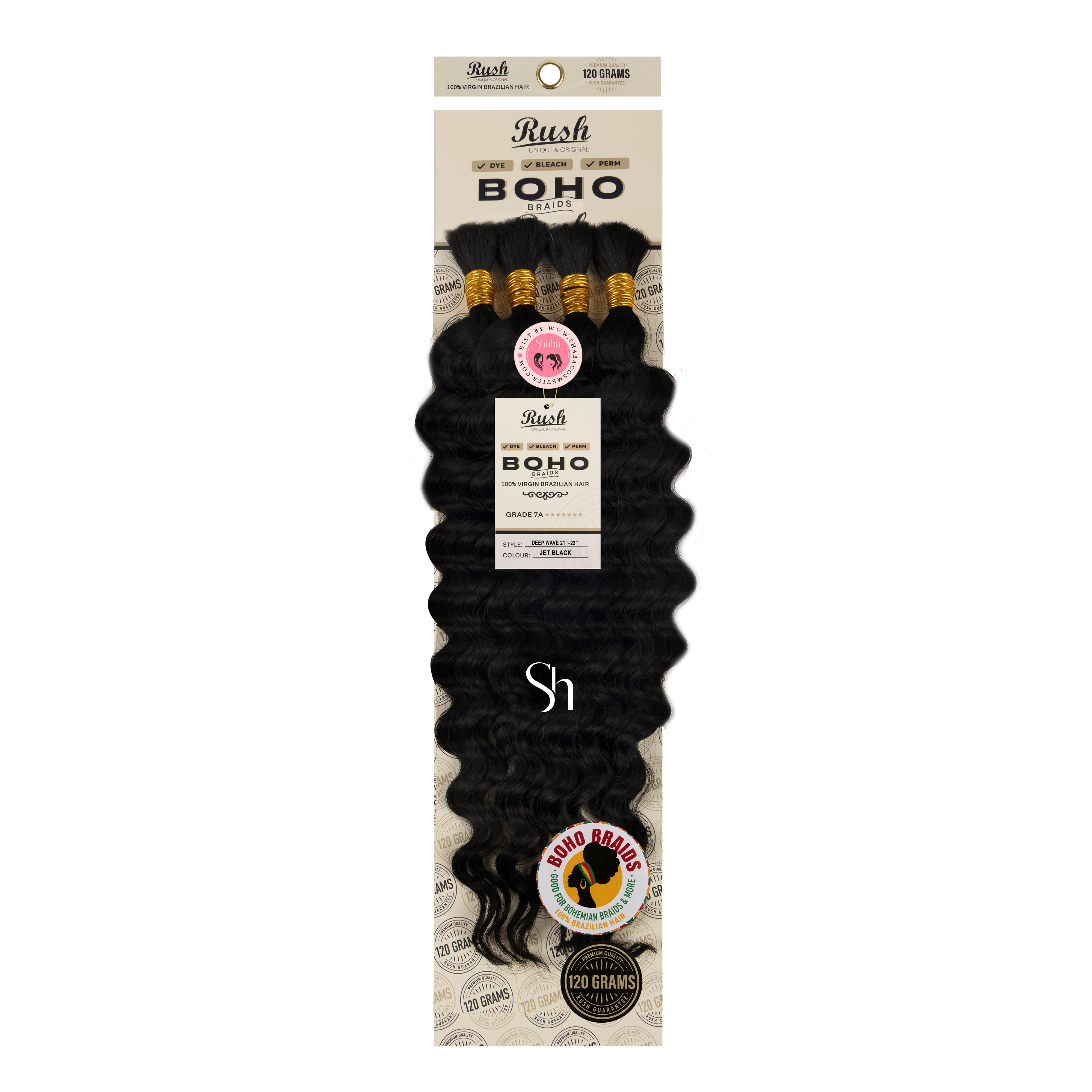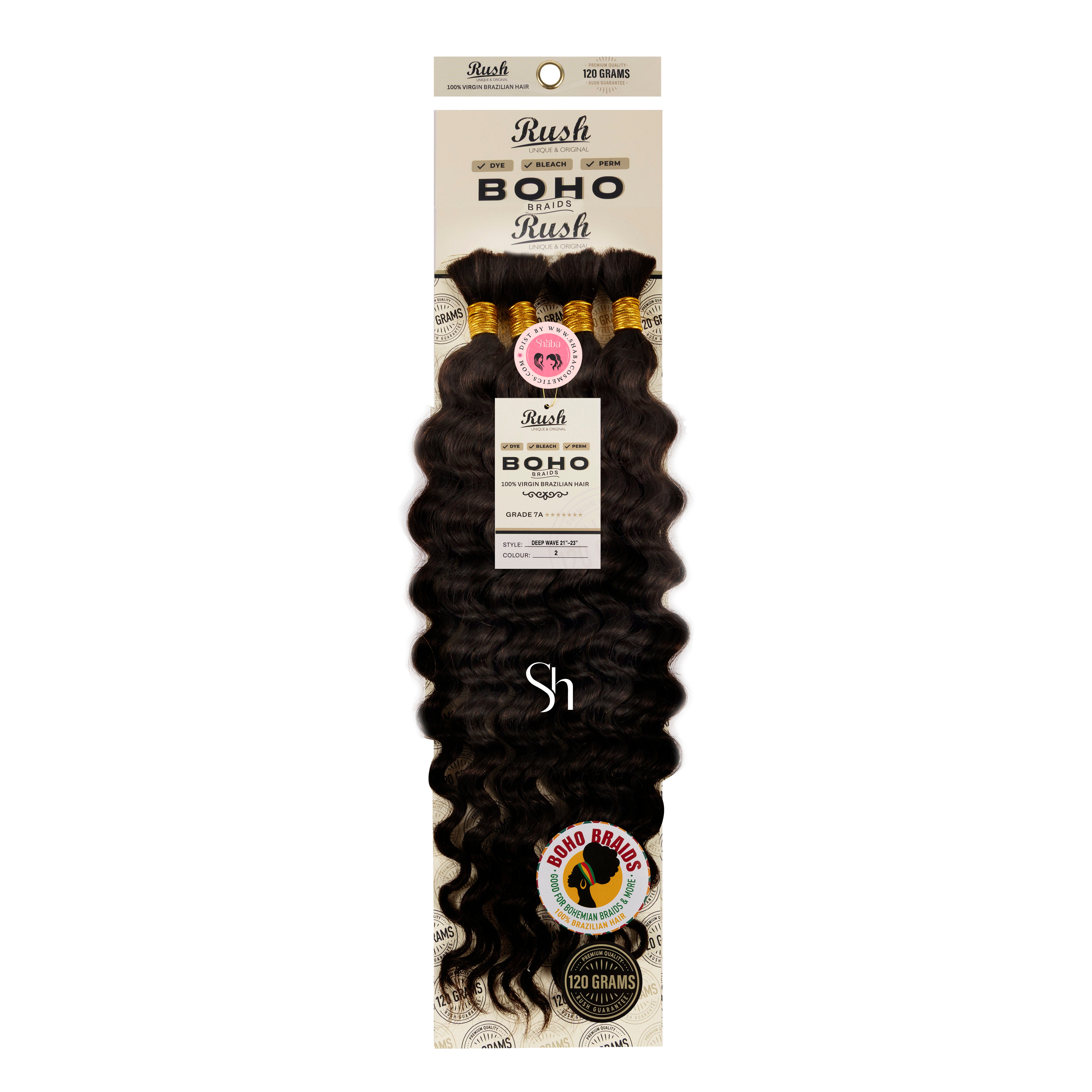 RUSH 100% VIRGIN BRAZILIAN BOHO BRAIDS DEEP WAVE BULK 21"-23"