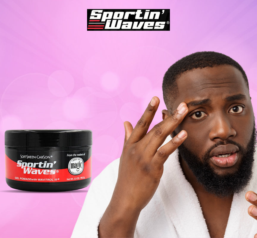 Sportin' Waves, manufactured by SoftSheen-Carson, isa gel pomade hair care product with Wavitrol III that African-American men use to enhance hair waves. Designed specifically for curly hair, the Sportin' Waves pomade helps transform coiled hair to hold your hair strands in place and lay flat after a few applications.