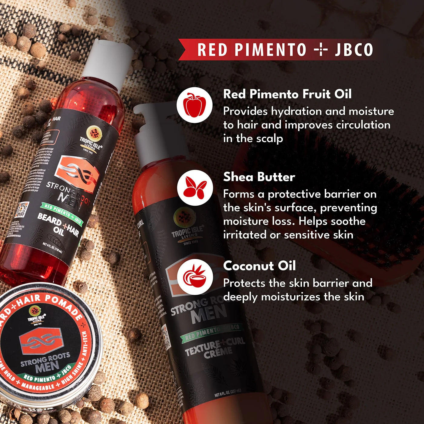 [JBCO & Red Pimento] Strong Roots Men collection combines Jamaican Black Castor Oil and Red Pimento Fruit Oil. Level up your beard & skin care regimen with our latest innovation in men’s care.
