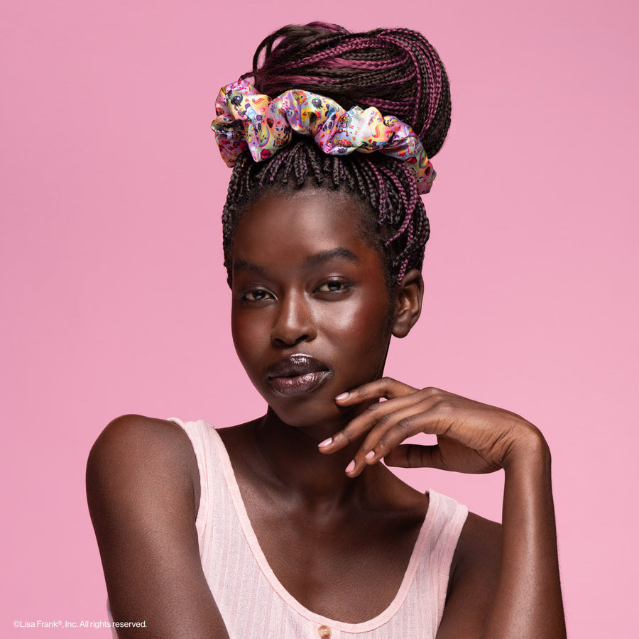 - Includes 2 oversized satin scrunchies inspired in the fantastic world of Lisa Frank